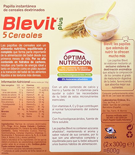 Blevit Plus 5 Cereales - Paquete de 2 x 300 gr - Total: 600 gr