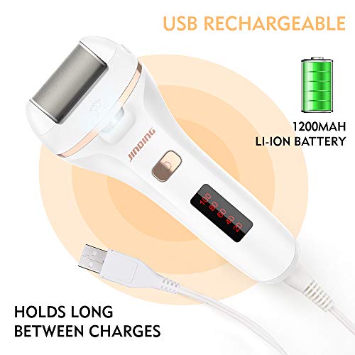 - ?【Cómodo de usar】 la batería de iones de litio incorporada de 1200 mAh permite recargar el removedor de callos del pie en cualquier momento. No es necesario comprar baterías secas; la tecnología impermeable permite que la herramienta de pedicura se pueda enjuagar bajo el grifo para una fácil limpieza.