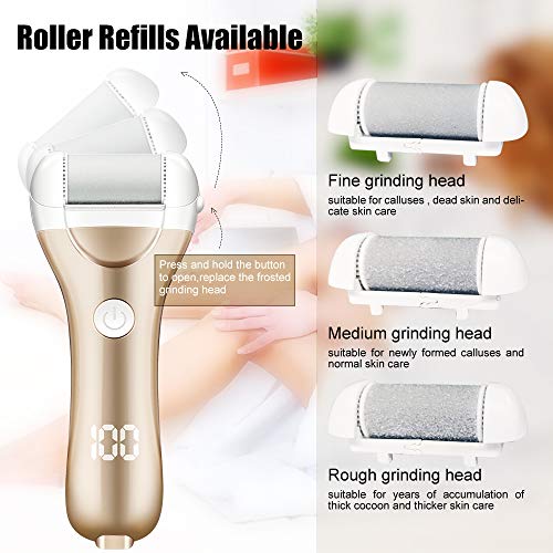 - Tres cabezales de rodillo para el cuidado de los pies: vienen con 3 cabezales de rodillo de diferentes estilos que satisfacen sus diferentes necesidades. 1 rodillo fino para el cuidado diario de los pies; 1 rodillo normal para eliminar la piel muerta; y 1 rodillo grueso para los molestos callos de grietas. Haciendo que sus pies luzcan más saludables y suaves.