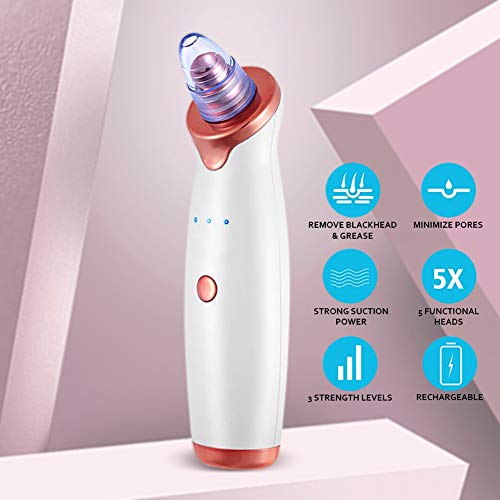 SVMUU Limpiador de Poros Extractor Puntos Negro Limpiador Facial Eléctrico Blackhead Recargable con USB con 4 Cabezales y 5 Nivel de Potencia para Espinillas y Acné Adecuado para Hombres y Mujeres