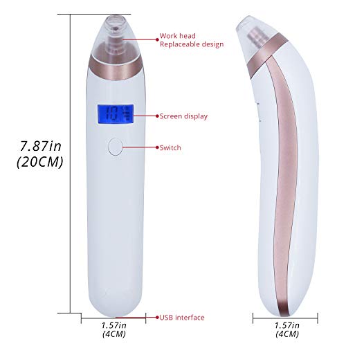 - ✔ RECARGABLE Y PORTÁTIL: no tiene que preocuparse por reemplazar las baterías, este removedor de puntos negros tiene una batería de litio recargable USB incorporada de 1200 mah de capacidad y también con un peso liviano de 140 gramos, diseño ergonómico, compacto y portátil para uso en su hogar o viaje .