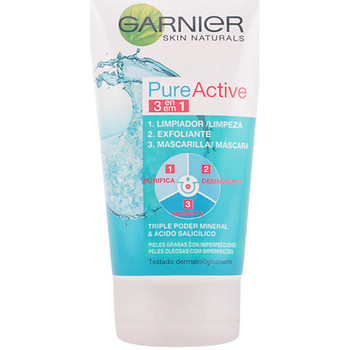 Garnier Skin Active Pure Active Gel 3 en 1 para Pieles Mixtas a Grasas Limpiador, Exfoliante y Mascarilla, 150 ml