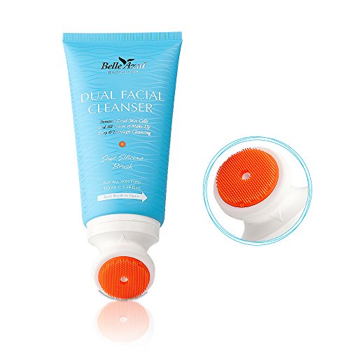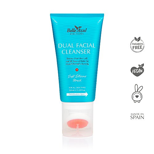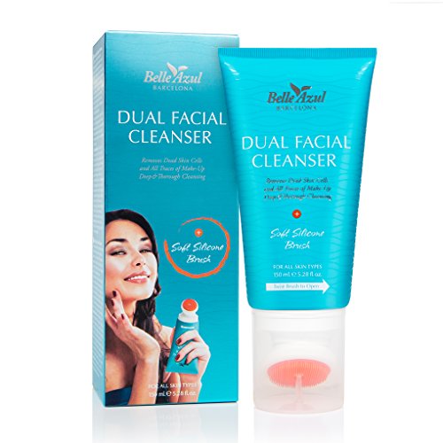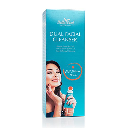 Belle Azul - Dual Facial Cleanser - Limpiador Facial, Exfolia y Elimina los puntos negros, Piel Fresca y Revitalizada, Incluye cepillo aplicador de silicona, 150 ml.