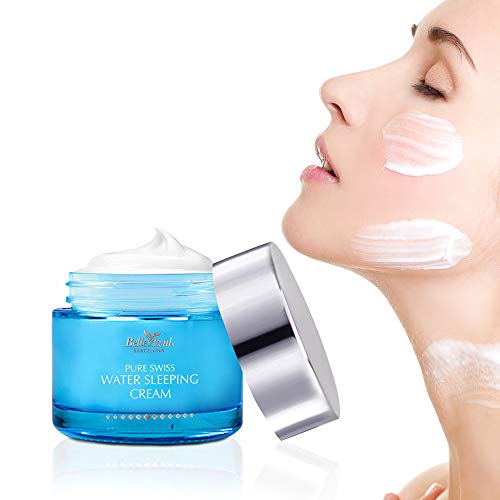 Belle Azul – PURE SWISS – Innovadora Mascarilla facial de noche, Ácido Hialurónico y Células Madre de Argán – No necesita aclarado, 50ml