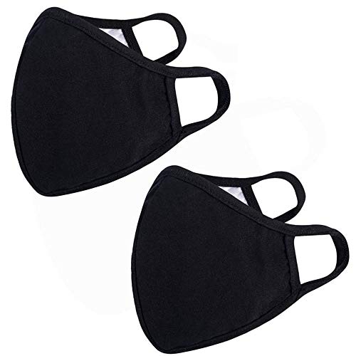 Mascarilla de algodon, 2 piezas algodón cara suave máscaras cómodas reutilizables (Negro)