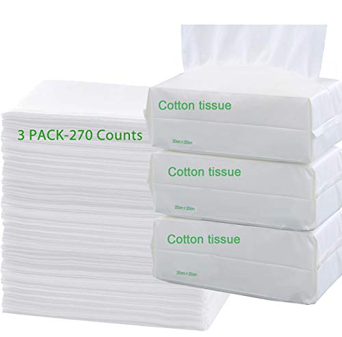 3 paquetes de limpieza facial de la piel 100% algodón tejido seco y mojado de doble uso natural engrosado, suave almohadillas de limpieza sensibles para eliminar el maquillaje (270 toallitas en total)