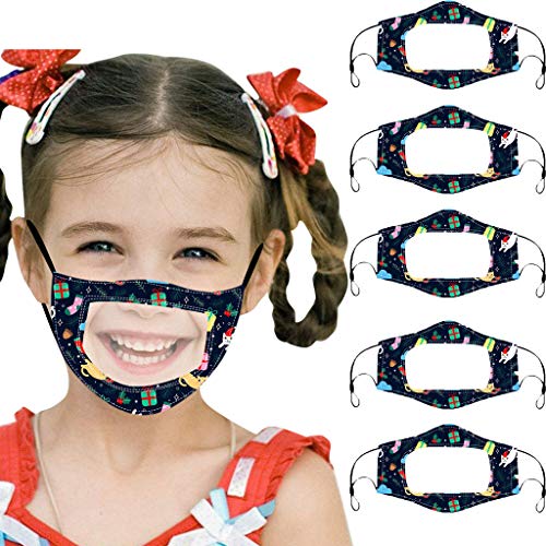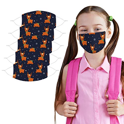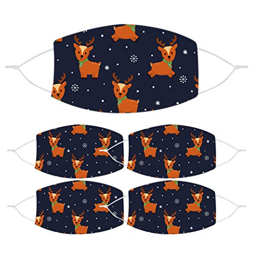 JMNyxgs 5PC Niño Navidad Cubrebocas Impresión Transpirable Reutilizable Lavable Moda Exterior Transpirable Ajustable D