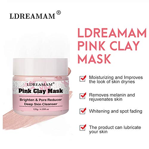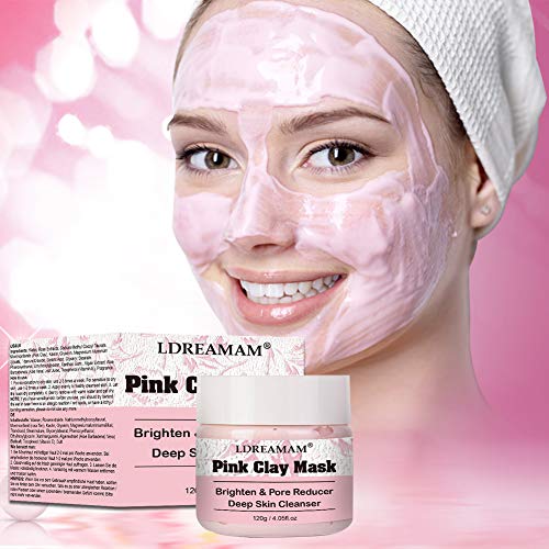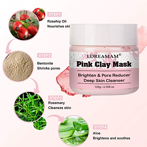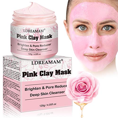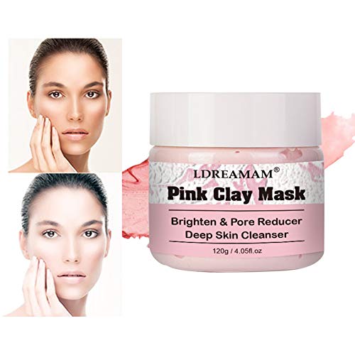 Mascarilla de arcilla rosa, Mascarilla facial de hidratante, Mascarilla Purificante e Exfoliante, Desintoxicación, limpieza profunda y refinación de poros para piel sensible, acné, eccema