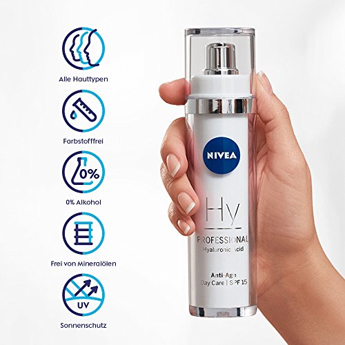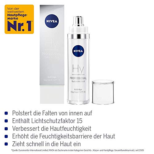 NIVEA PROFESSIONAL Ácido hialurónico, crema de día con FP15, crema antiedad de alta eficacia, innovadora crema reafirmante facial antiarrugas, protección solar contra el fotoenvejecimiento, 1 x 50 ml