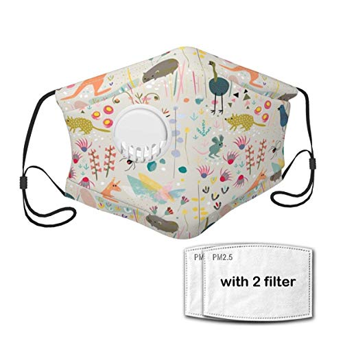 Australian Animals by Mount Vic and Me Pañuelos faciales Unisex Ajustable Reutilizable Protección Antipolvo Pañuelo Facial Lavable con Filtro