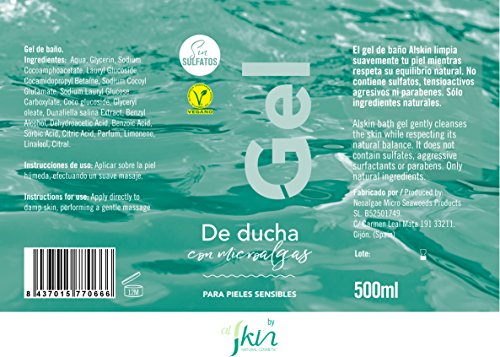 Alskin - Gel de Ducha Sin Parabenos y Sin Sulfatos | Vegano | Gel de Baño a Base de Microalgas Indicado Para Pieles Sensibles | 500mL