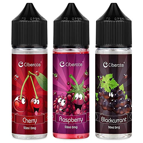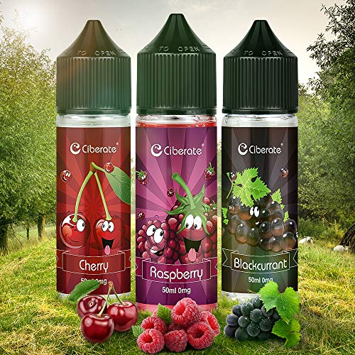 - Paquete incluido: 3 botellas de 50 ml de líquido vape, 0 mg de nicotina, 70 VG / 30 PG. E Sabor de jugo: frambuesa + cereza + grosella negra.