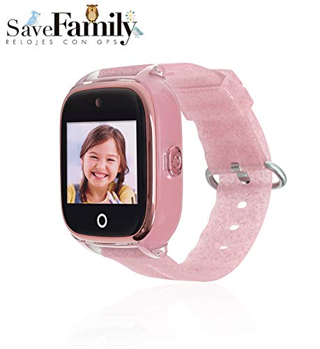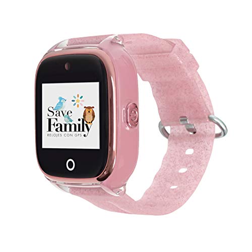 Reloj con GPS para niños SaveFamily Superior acuático con cámara Rosa Glitter. Smartwatch con botón SOS, Permite Llamadas y Mensajes. Resistente al Agua Ip67. App Propia SaveFamily. Incluye Cargador