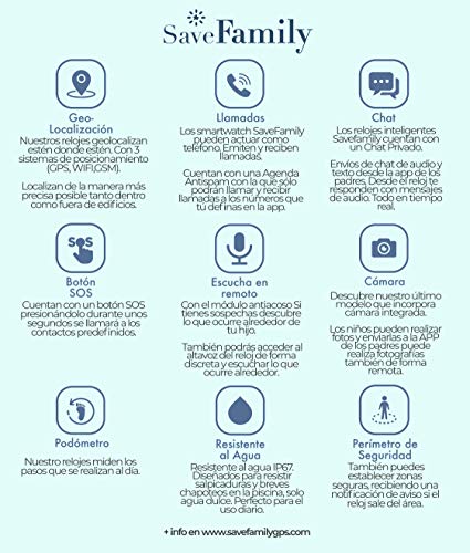 Los smartwatch SaveFamily actúan como teléfono y cuentan con un chat privado. Emiten y reciben llamadas. Cuentan con una Agenda Antispam con la que sólo podrán llamar y recibir llamadas a los números que tú definas en la app. Seguridad total para los que más quieres. Su primer teléfono sin los riesgos del móvil.?GEOLOCALIZACIÓN GPS?