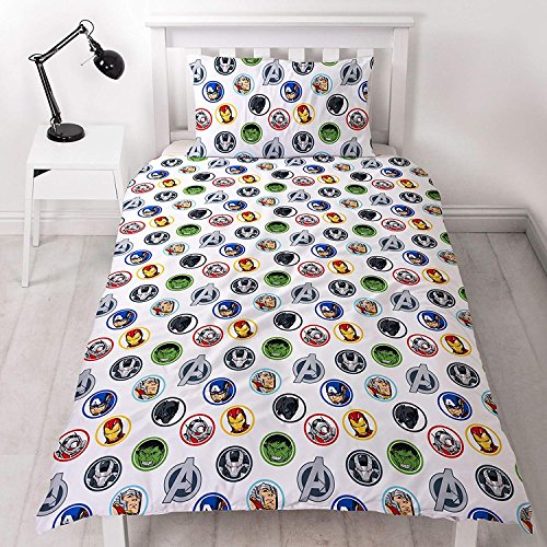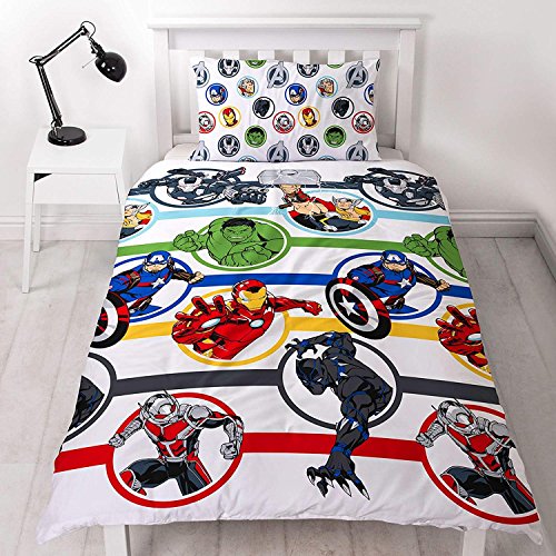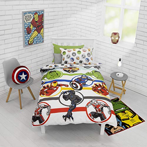 Marvel Avengers - Juego de sábanas para niños con funda nórdica individual (incluye funda de almohada a juego)