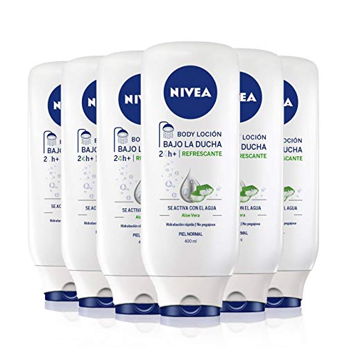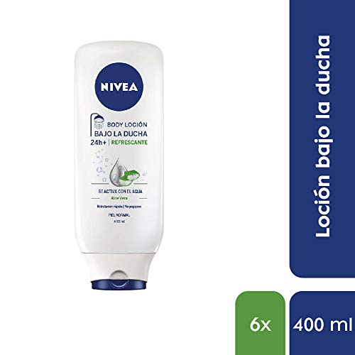 NIVEA Bajo la Ducha Body Loción Refrescante en pack de 6 (6 x 400 ml), loción corporal para la ducha con aloe vera, loción hidratante para el cuidado de la piel normal