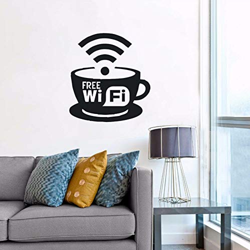 Mrlwy Wifi gratis Logotipo de la pared Tatuajes de la ventana Café Café Restaurante Arte de la pared Decoración Nuevo diseño de vinilo etiqueta de la pared 38x42 cm
