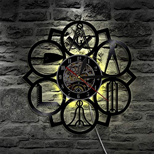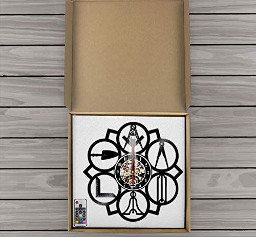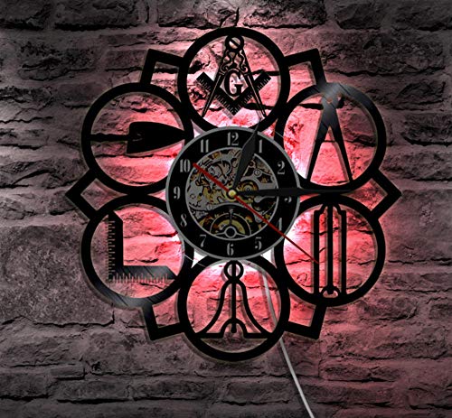 Reloj De Pared 3D con Logotipos Masónicos con 7 Luces De Iluminación Reloj De Vinilo con Disco De Vinilo De Mason Vintage Gratis Decoración para El Hogar Signo De Pared Masónico con Led