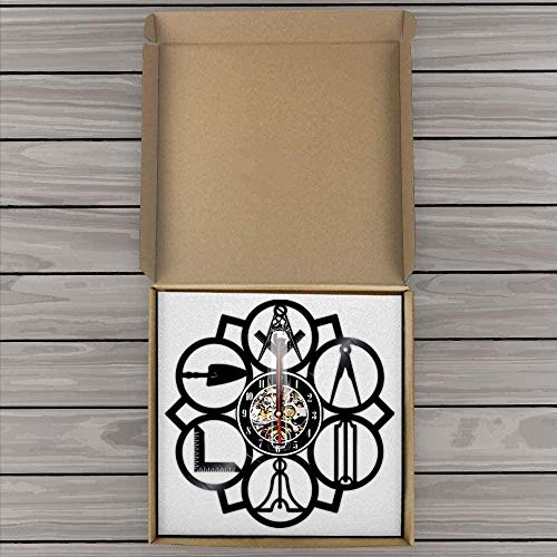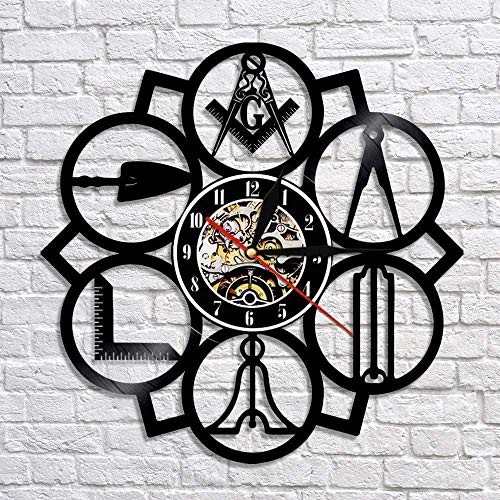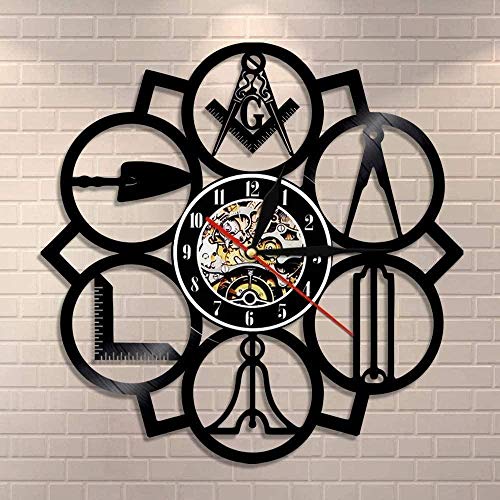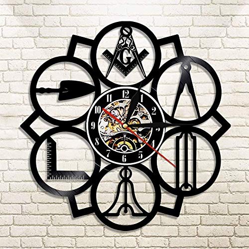 Reloj de Pared con Logotipos masónicos Mason Gratis Reloj de Registro de Vinilo Vintage Ornamento de mampostería Reloj de Pared Moderno Reloj Decorativo Regalo