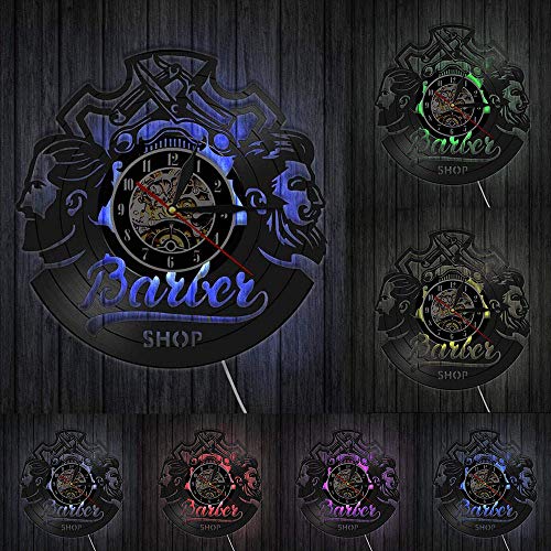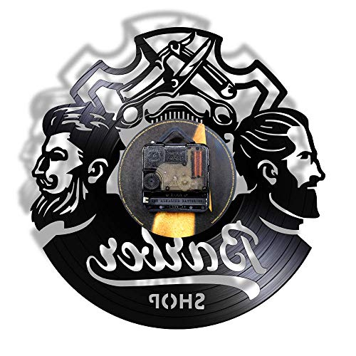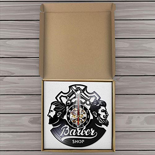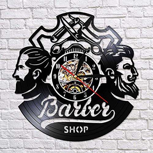 WAGUZA Reloj de Pared con Registro de Vinilo Vintage con Logotipo de peluquería, decoración para el Cabello, Letrero de Pared para peluquería, Reloj de Pared Decorativo