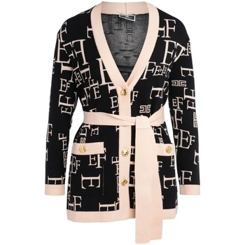 Elisabetta Franchi Chaqueta de punto Cárdigan negro con logotipos mantequilla