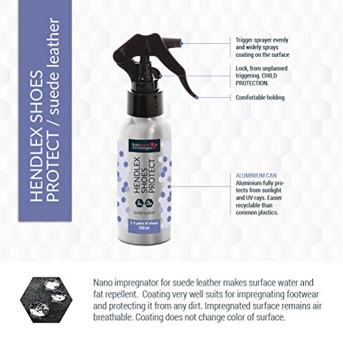 - â Hendlex Nano protector es Spray repelente de agua y manchas: nuestra fĂłrmula de impermeabilizaciĂłn superior estĂĄ diseñada para mantener tu calzado repelente de manchas de sal, lluvia y por lo que es resistente a la intemperie. Aumenta la resistencia a las manchas y al agua sin mucho esfuerzo, solo rocĂe sus botas.