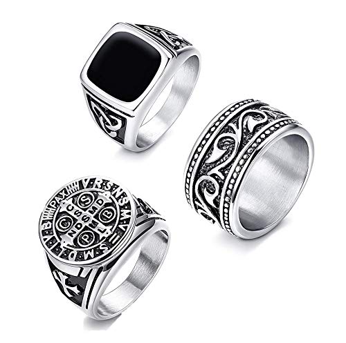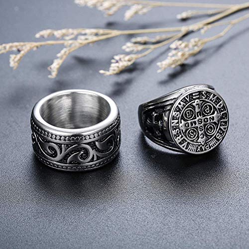 - ★DISEÑO★ Estilo retro, el patrón de nudo celta agrega una sensación misteriosa al anillo, y la talla clara le brinda una sensación de lujo que lo hace atractivo. En el centro del anillo, hay una cruz. Las letras verticales en la cruz. Todos los detalles del anillo son buenos, todas las letras son correctas y claras. El bien diseñado San Benito es perfecto para los hombres que lo protegen de los demonios.