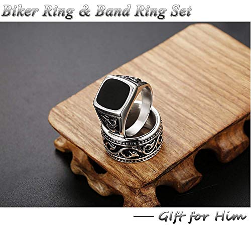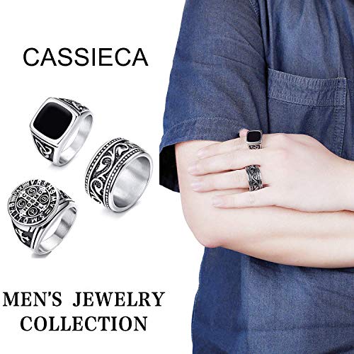 CASSIECA 3PCS Anillo de Acero Inoxidable para Hombres Mujeres Grandes Anchos Cuadrado Grabado Anillo Vintage Rock Gotico Anillos Joyeria