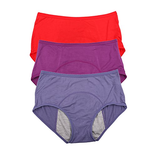 viscosa de bambú breve período fisiológico bragas estancos Multi Pack Tamaño 36-44 (42, Red,Purple,Denim blue)