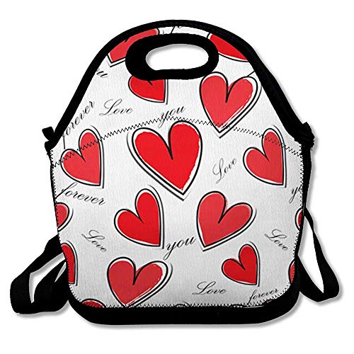 Reusable Lunch Bag for Men Women Wedding Pink Chic Heart Pattern Holidays Red Day Abstract Black Creative Dot Design Insulated Lunch Tote for Travel Office School