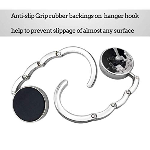 - Diseño: la alfombrilla antideslizante se fija sobre la mesa, para que tu bolsa se pueda colgar fácilmente en la mesa, y tenga cuidado de no utilizar la mesa demasiado gruesa.
