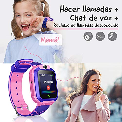 NAIXUES Smartwatch Niños, Reloj Inteligente Niña IP67, LBS, Hacer Llamada, Chat de Voz, SOS, Modo de Clase, Cámara, Juego, Regalo para Niños de 3-12 años, soporta 2G tarjetáas Micro SIM (Rosa)