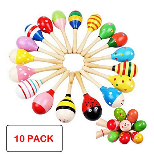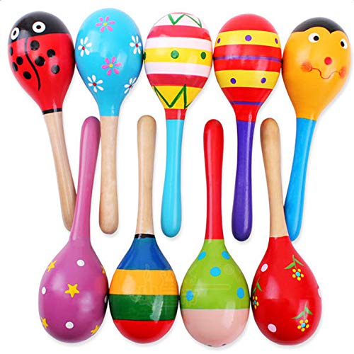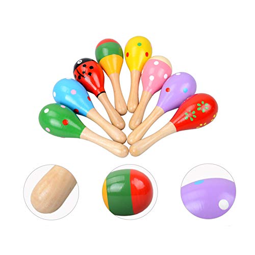 PIXNOR Maracas sonajero coctelera Musical juguetes de madera para niños 10 pcs (patrón de Color al azar)