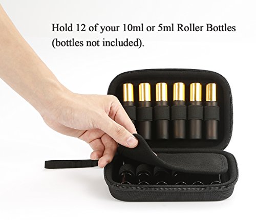 Funda de Transporte portátil para Aceite Essencial, Perfecto para Young Living,Doterra y más,Capacidad para 12 Botellas (Capacidad para 5 ml/10 ml y rollos de 10 ml)-Negro