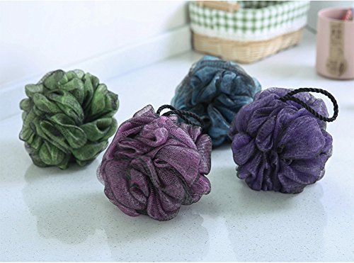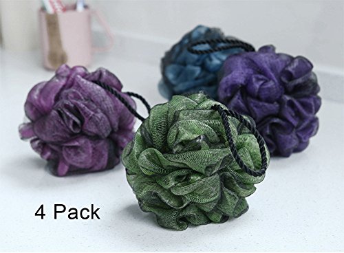 KFZR Paquete de 4 grandes exfoliantes cuerpo de baño de ducha Esponja Puff para hombres y mujeres Verde Azul Rosa Púrpura doble capa Negro capa externa