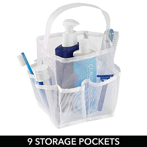 - PRĆCTICA CESTA DE DUCHA: puede utilizarse como estante para colgar en la ducha, en la piscina o en el camping. Los 9 bolsillos de malla le ofrecen espacio para champĆŗ, cepillos y mĆ”s.