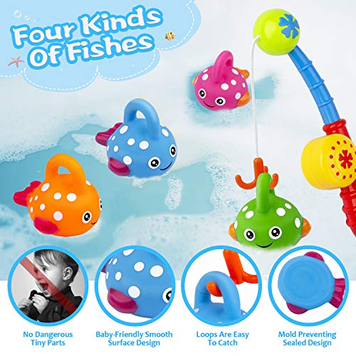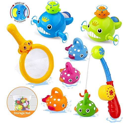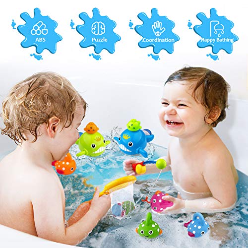 Tintec Juguetes de BaƱo Bebe, Kit Juegos Agua de Pescar BaƱera, 8 Piezas Juegos Peces Piscina de Animal Marino Cuerda para BebƩ con Malla de BaƱo