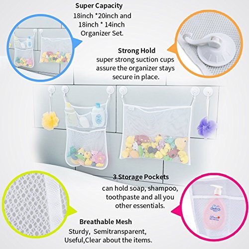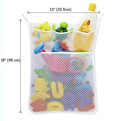 - ⶠTamaño: 1 x organizador de juguetes bañera grande (30 x 40 x 10 cm) .2 x Organizador de juguetes de baño de malla (35 x 45 cm). para mÔs espacio en la ducha.