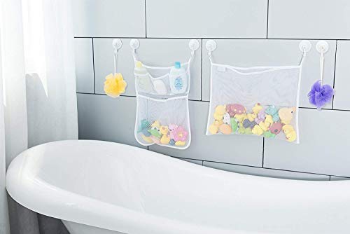 - BONIFICACIĆN - SEIS CUPETAS DE ASPIRACIĆN DE SERVICIO PESADO GRATUITAS: A diferencia de algunas de las otras redes de juguetes para baƱo, incluimos 6 ventosas sĆŗper fuertes en lugar de solo 4. Las ventosas pueden contener cualquier cosa en cada superficie plana (puertas, azulejos, vidrio, gabinetes, etc.) . Los otros dos se pueden usar para colgar toallas, batas, esponjas, canastas, limpiadores de espalda o cualquier otro accesorio de baƱo. Puede permitirse el peso pesado firmemente sin perder.