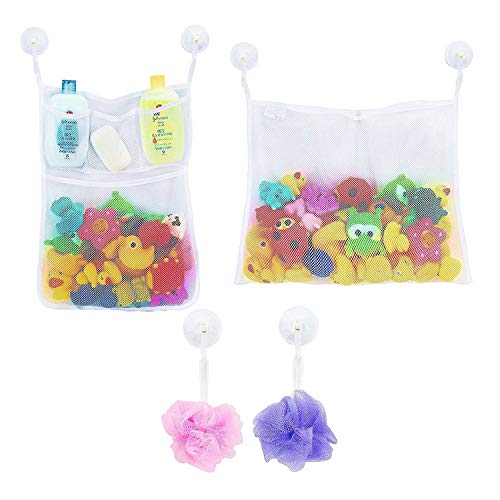 - āCONJUNTO COMPLETO - El conjunto incluye una bolsa de almacenamiento de juguetes, 4 ganchos adhesivos impermeables y 1 esponja de ducha, muy comoda y agradable de usar. Su hijo disfrutarĆ” de su ducha muy alegremente.