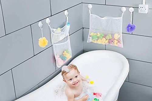 LEEFE 2 x Red de malla, Organizador de Juguete de BaƱo, Bolsa de Almacenamiento Soporte con Ventosa con 6 Gancho Fuerte ara cuarto de baƱo y baƱera