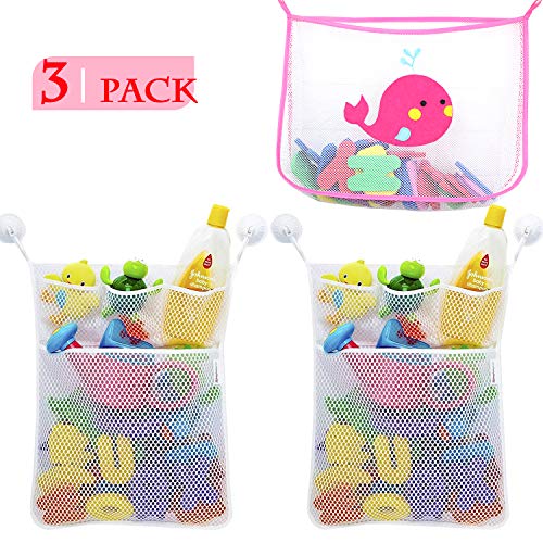 - ⶠNo mÔs Baby Bath Toy Mess: organizador de juguetes de baño de malla de 3 piezas, fÔcil de ver y alcanzar para los bebés y los bebés, los niños querrÔn guardar sus juguetes de baño en este organizador de juguetes de baño de múltiples bolsillos.