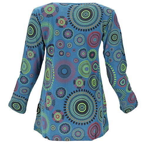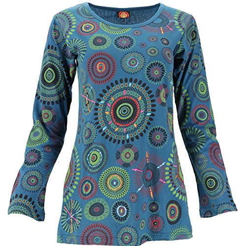 Guru-Shop - Camiseta de manga larga bordada estilo hippie Chic, de mandala para mujer, algodón, suéteres, manga larga y sudaderas alternativas petróleo Small/Medium