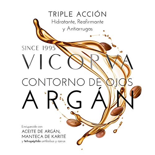 VICORVA CONTORNO DE OJOS ARGÁN | Triple acción: hidratante, reafirmante y antiarrugas | Minimiza bolsas y ojeras | Aceite de Argán y Manteca de Karité | 15ml