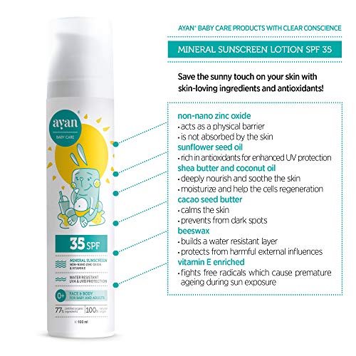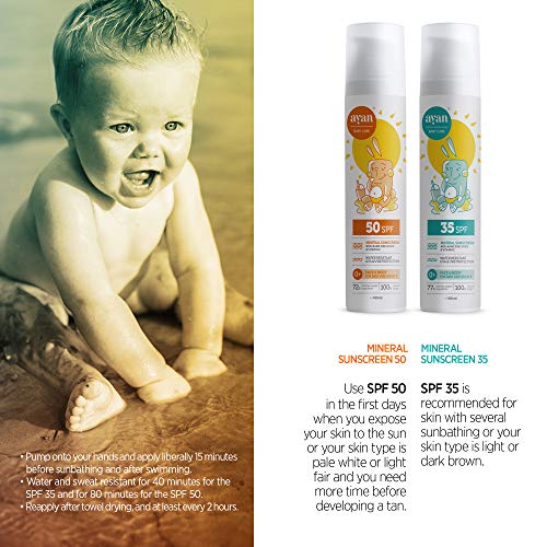 AYAN protector solar FPS 35 para bebés y niños✔️ Protección solar mineral SIN nanoparticulas y UV filtros químicos✔️ Cosmética natural con manteca de karité, cera de abeja, aceite de coco y vitamina E