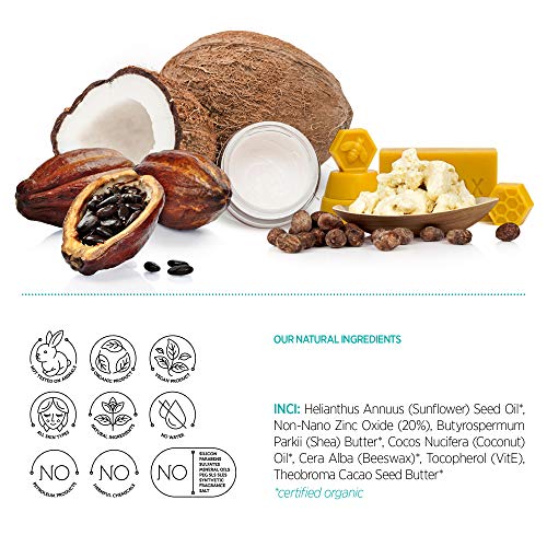 - ? PROTECCIÓN Y CUIDADO: Protección eficaz, con textura y aroma agradable gracias a los ingredientes contenidos en su fórmula exclusiva: manteca de karité, aceite de coco, cera de abejas, aceite de girasol, manteca de cacao, vitamina E y óxido de zinc. Protege la piel sensible del bebé de la peligrosa radiación solar y al mismo tiempo la cuida ya que respeta el equilibrio natural de la piel y aporta una hidratación intensa a la misma.