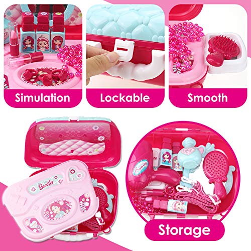 Buyger Maletin Maquillaje Niñas Estuche Belleza Joyería Peluqueria Kit Juguete Accesorios Regalo para Princesa Niñas Infantil 3 4 5 Años