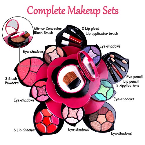 Kits de maquillaje Conjunto de regalo de paleta de maquillaje de flores para niñas y mujeres adolescentes - Pétalos expandidos a 3 niveles - Juegos completos para principiantes, Cosplay