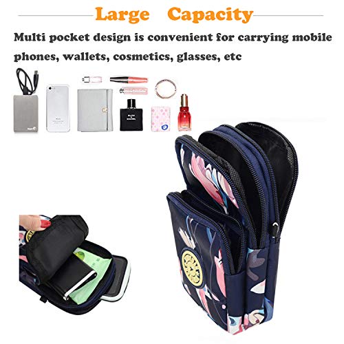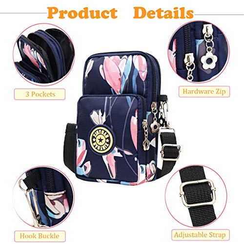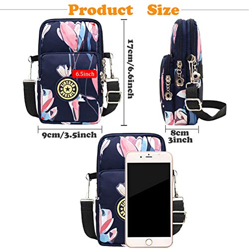 TCHEER - Mini bandolera multifunción, resistente al agua, 3 capas, bolsa para teléfono inteligente, regalo para niña adolescente, 6,5 pulgadas, maquillaje y llaves Flor 3 S