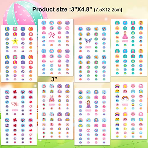 - ?Lindo y Gracioso Niñas Niños Uñas Art Calcomanías: 8 hojas de más de 360+ diseños de pegatinas de uñas 3D, diseño de decoración de pegatinas de uñas coloridas y lindas en muchos patrones divertidos: princesas, flores, mariposas, corazones, estrellas, letras, amor, arcoíris, diamantes, flamencos, zapatos, Luna, collar, fruta, corona, caballo, nubes, carro, etc., agregue maquillaje colorido y lindo en la fiesta.